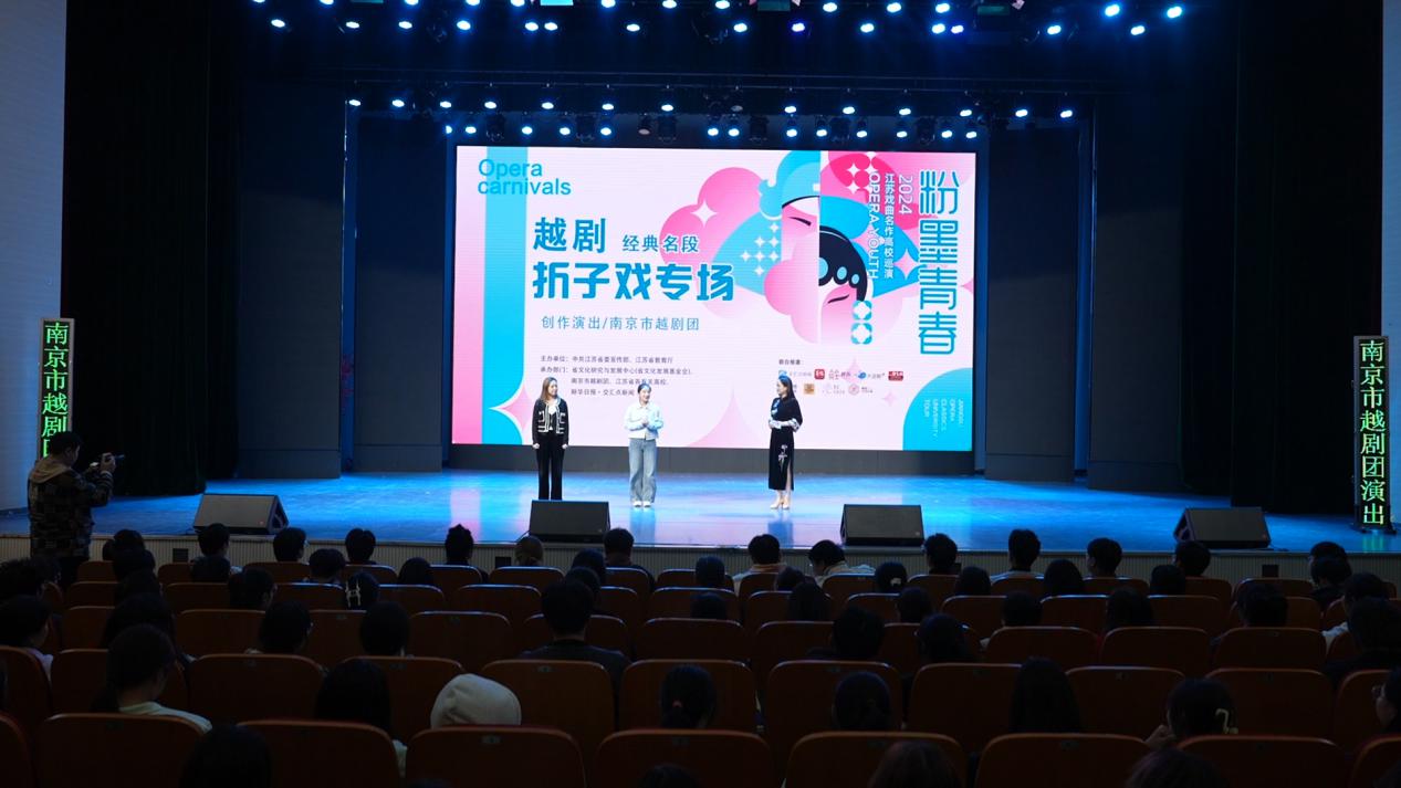 江苏省演艺集团京剧院《四郎探母》、江苏省苏州昆剧院《林冲》、无锡市锡剧院《涓生之路》、扬州市扬剧研究所《郑板桥》、南京市越剧团《梁山伯与祝英台》……为弘扬中华优秀传统文化,让学生更加深入了解并欣赏中国传统戏曲艺术,由中共江苏省委宣传部、省教育厅主办的2024年度“江苏戏曲名作高校巡演”活动如火如荼举行中。本次活动将持续至今年12月。在此期间,各剧团将带着5部大戏,5台折子戏,共75场演出,走进全省60所高校,为学生带来精彩的戏曲表演和导赏讲解。