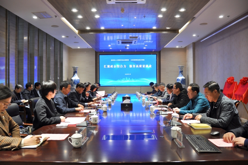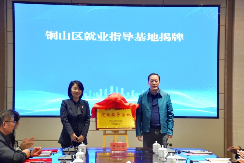 11月5日下午,政企校联合共建徐州市大学生就业指导服务站签约揭牌活动在我校图书馆会议室举行。学校党委副书记、校长沈士德,徐州市人力资源和社会保障局党委书记、局长于洪亮,党委委员、副局长闫岩,徐州市人力资源和公共就业管理中心主任卢丰,铜山区人力资源和社会保障局党委书记、局长魏梅出席活动。徐州中煤百甲重钢科技股份有限公司等8家企业代表,学校就业工作专班成员及部分二级学院负责人参加活动。