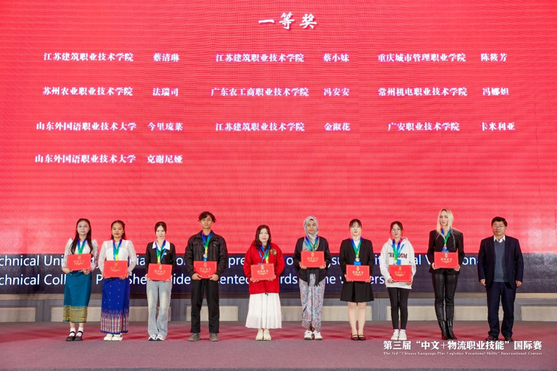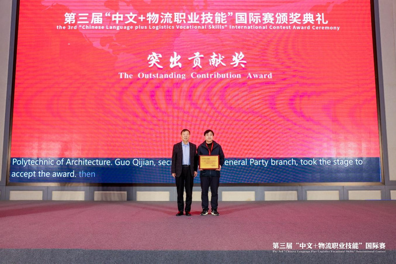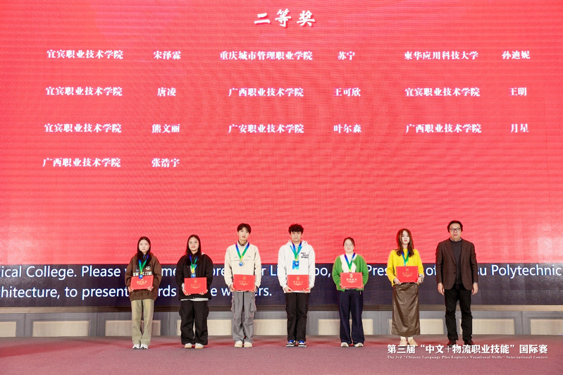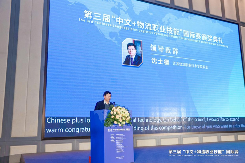 11月24日,由中国物流与采购联合会主办,我校承办的第三届“中文+物流职业技能”国际赛总决赛落下帷幕,颁奖典礼在徐州宝信君澜酒店举行。中国物流与采购联合会副会长、中国物流学会会长任豪祥,我校党委副书记、校长沈士德,党委委员、副校长刘海波,中国物流与采购联合会教育培训部主任、物流行指委副秘书长李俊峰等领导出席颁奖典礼,来自全国各院校近25个国家的100名参赛选手、指导教师参加颁奖典礼。