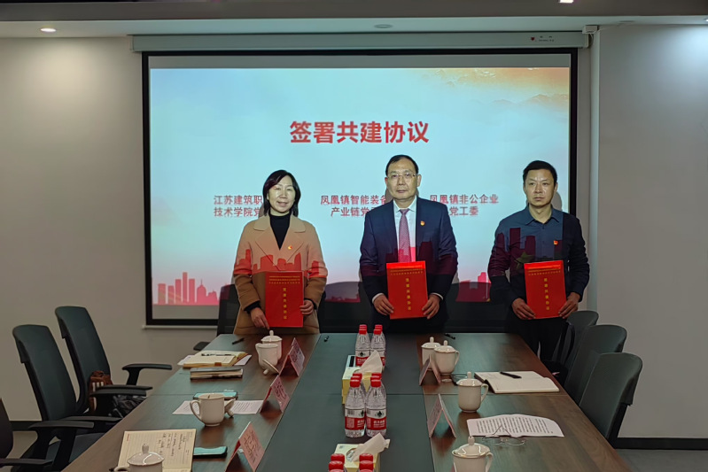 为深入贯彻习近平总书记关于“江苏要在强链补链延链上展现新作为”重大要求,进一步推进区域化党建共建工作,深化校企产教融合,以“党建链”赋能“产业链”高质量发展,11月30日,我校在张家港凤凰镇举行智能装备产业链校政企党建共建活动。张家港市人社局党组成员、副局长盛宇红,张家港市凤凰镇智能装备产业链党委书记徐文良,校党委组织部、招生与就业处、智能制造学院相关负责人出席活动。活动由张家港市凤凰镇党委组织委员、非公企业党工委书记黄旭东主持。