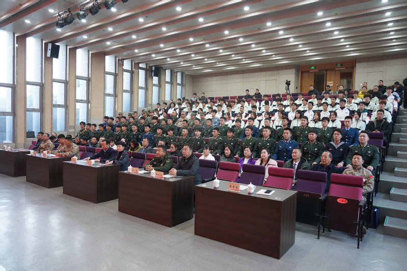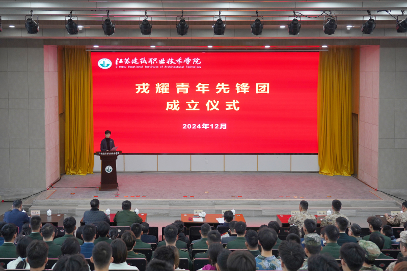 12月6日,我校国防社团“戎耀青年先锋团”成立仪式在学校图书馆报告厅举行。校党委副书记梁惠,徐州市退役军人事务局副局长陈志刚,泉山区人武部部长赵超,校学工处、团委、保卫处,各二级学院党总支副书记、退役士兵及学生代表200余人参加活动。