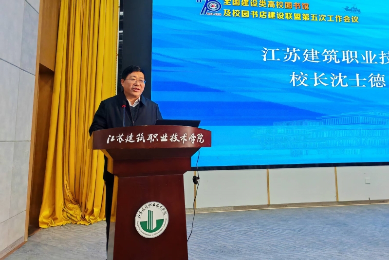 会上,沈士德代表学校对各位嘉宾莅临指导表示热烈的欢迎和衷心的感谢。他简要介绍了我校历史沿革、办学理念、人才培养成就及当前职本创建情况,回顾了我校与中国建筑工业出版社多年来在教材出版、图书捐赠等方面所取得的合作成果,并充分肯定了我校在建工出版社建社70周年之际成为建设类高校校园书店联盟新成员的重大意义。他表示,希望校社双方能够以此次会议为契机,在深化交流合作的基础上,继续加强教材出版、学校“新双高”建设、文化育人工程等方面的合作,发挥好校园书店在我校教师发展、学生成长中的支点桥梁作用。同时,他还希望校企社三方充分落实三方协议精神,将校园书店建设成为学生打卡的网红点、校园文化的会客厅、学术交流的新中心。