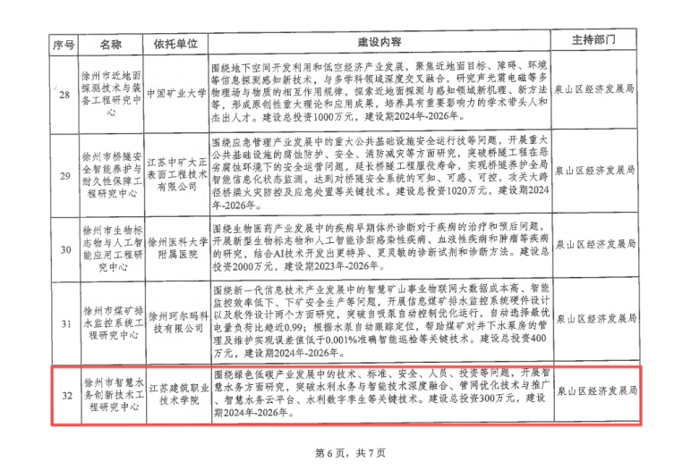 近日,徐州市发展和改革委员会发布《关于同意建设2024年市级工程研究中心的通知》,其中由我校建筑智能学院江苏工匠刘喜坤科研团队所申报的徐州市智慧水务创新技术工程研究中心获批立项。