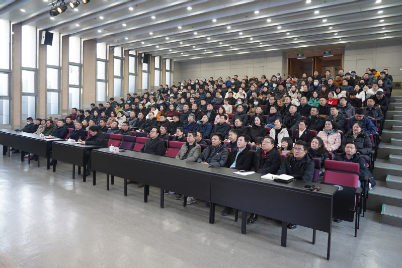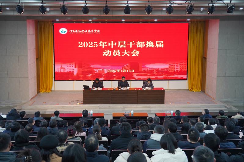 1月13日下午,学校在图书馆报告厅召开2025年中层干部换届动员会。在校校领导、全体副科级以上干部、副高级及以上专业技术人员、专业主任、教研室主任,民主党派和统战团体负责人、区级以上人大代表和政协委员等200余人参加会议。会议由党委副书记梁惠主持。