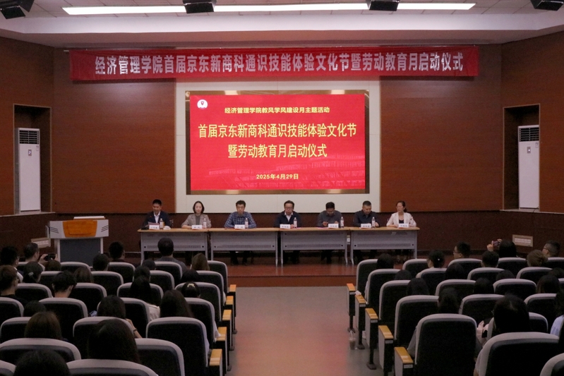 4月29日上午,我校首届“京东新商科通识技能体验文化节暨劳动教育月”启动仪式在创翼学堂举行。党委委员、副校长刘海波,京东教育研究院方案解决经理李红彦出席活动,学校教务处、学工处、通识教育学院等部门负责人及经济管理学院师生代表参加活动。