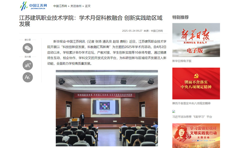 学术月活动紧密围绕国家“双高计划”与“智能建造”专业建设目标,多元融合,推动职业教育高质量发展。学校相关负责人表示,在深化现代职业教育体系建设改革的背景下,学校将以本次学术月成果为起点,持续深化产教融合、攻关关键技术、服务国家战略,为职业教育成为江苏“挑大梁”的硬核支撑贡献“建院力量”。