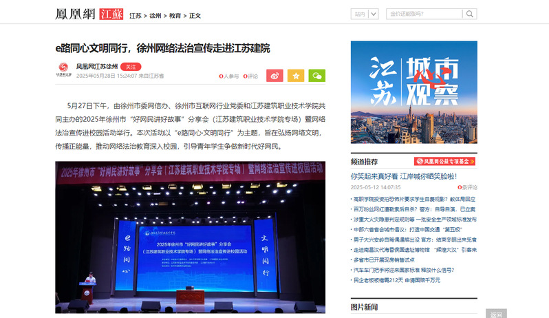 5月27日下午,由徐州市委网信办、徐州市互联网行业党委和华体会体育共同主办的2025年徐州市“好网民讲好故事”分享会(华体会体育专场)暨网络法治宣传进校园活动举行。本次活动以“e路同心·文明同行”为主题,旨在弘扬网络文明,传播正能量,推动网络法治教育深入校园,引导青年学生争做新时代好网民。