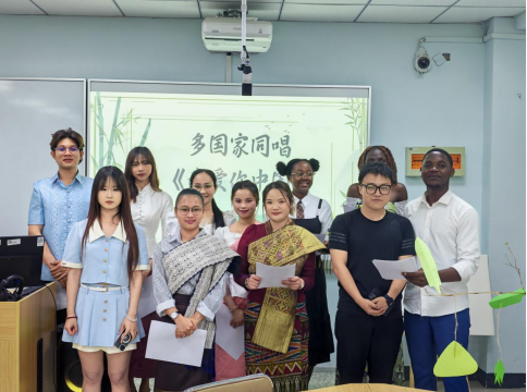 活动现场精彩纷呈。在素描水墨画创作活动中,民盟江苏建筑职业技术支部盟员徐思田教授悉心指导留学生们围绕端午主题,挥毫泼墨,创作出一幅幅生动的素描水墨画。其中,龙舟竞渡图尤为引人注目,引得留学生频频拍照留念。柬埔寨学生团队改编的《端午龙舟》绘画作品,巧妙融入了高棉文化元素,展现了中外文化的完美融合。在汉代瓦当纹样拓印活动中,特邀非遗艺人孙洪升为留学生们讲解汉代瓦当的历史与文化内涵,并指导他们亲手用宣纸复刻瓦当纹样。来自喀麦隆的伯纳德在完成“青龙”图案拓印后,惊叹道:“这些凹凸的线条里藏着两千年的密码!”建筑装饰专业的柬埔寨学生罗彬辰表示,瓦当纹样启发了他的毕业设计,他计划将饕餮纹融入现代家具设计中,充分体现了非遗文化在现代生活中的创新应用。在“秀我中文,唱响中国”表演环节,五个国家的中外学生齐聚一堂,深情演绎《我爱你中国》,流畅的中文歌声引发热烈掌声。书法作品展示活动中,留学生们用母语书写“端午安康”的书法作品,为中华优秀传统文化注入了崭新的表达维度。本次活动,中外师生合作作品二十几件,包括融入东盟文化的端午主题画作、论语名句摘抄、瓦当拓片以及融合非洲蜡染技法的香囊等,包括后续继续创作的优秀作品将在装裱包装后,作为校际交流礼物赠予合作院校,进一步促进中外文化交流与合作。