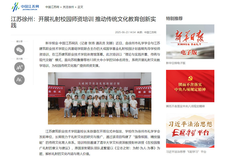 新华报业·中国江苏网讯(记者 张扬 通讯员 刘娜)近日,由徐州市礼学学会与华体会体育公共基础学院联合主办的大成国学基金礼射校园计划首期先导学校师资培训,在华体会体育体育馆落幕。此次培训以“理论与实践并重、传统与现代交融”模式,面向苏皖鲁豫等地13所大中小学的50余名师生,系统开展礼射文化教学培训,为校园传统文化推广提供师资支撑。