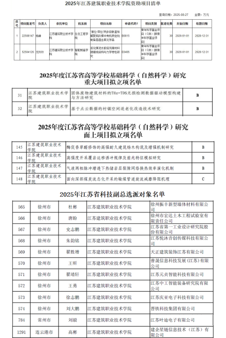 此外,在2025年度江苏省高等学校基础科学(自然科学)研究项目中,我校共获批6项,其中包括重大项目2项、面上项目4项,涉及多个学科领域。在同年度江苏省科技副总评选中,我校共有12位教师入选。