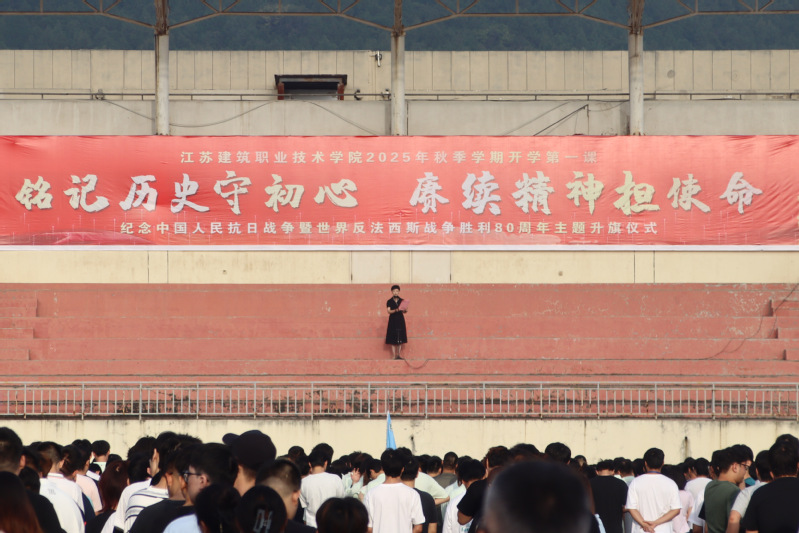 9月1日上午,我校全体在校学生齐聚西操场参加新学期升国旗仪式,仪式同步纪念中国人民抗日战争暨世界反法西斯战争胜利80周年,校党委副书记梁惠参加仪式并讲话。