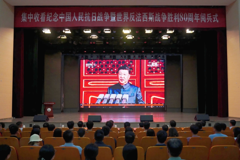 为缅怀革命先烈,感受强军成就,砥砺爱国情怀,9月3日上午,学校党委班子全体成员及部分师生代表在会堂集中收看了纪念中国人民抗日战争暨世界反法西斯战争胜利80周年大会实况直播。