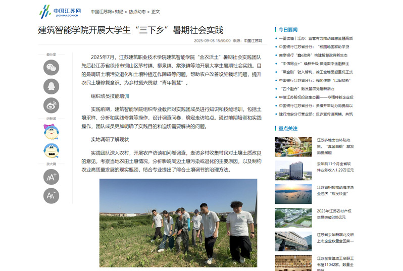 2025年7月,华体会体育建筑智能学院“金衣沃土”暑期社会实践团队先后赴江苏省徐州市铜山区茅村镇、柳泉镇、棠张镇等地开展大学生暑期社会实践。目的是调研土壤污染退化和土壤种植连作障碍等问题,帮助农户改善设施栽培问题,提升农民土壤修复意识,为乡村振兴贡献“青年智慧”。