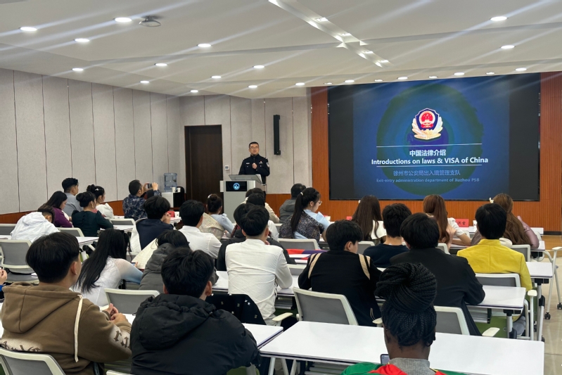 在随后举行的入学教育环节,徐州市出入境管理支队警官王成为新生作来华留学生安全教育专题讲座,围绕中国法律法规、出入境管理政策、签证办理注意事项及日常生活安全等内容进行讲解,并现场答疑解惑,帮助新生更好地适应在华学习生活。