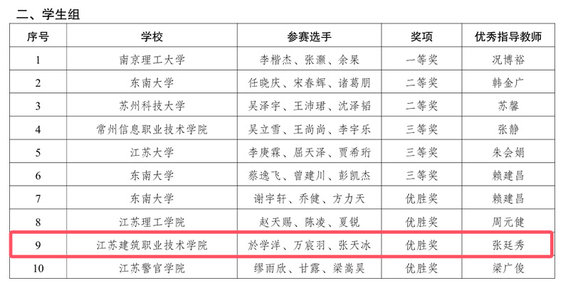 近日,由江苏省国家密码管理局、省总工会、省委省级机关工委、省委网信办、省教育厅共同举办的2025年江苏省密码行业职业技能竞赛在常州落幕。我校信电工程学院教师张廷秀在职工组比赛中表现优异,位列第四名,荣获二等奖;该院学生於学洋、万宸羽、张天冰组成的参赛队伍荣获学生组第九名,获评优胜奖。